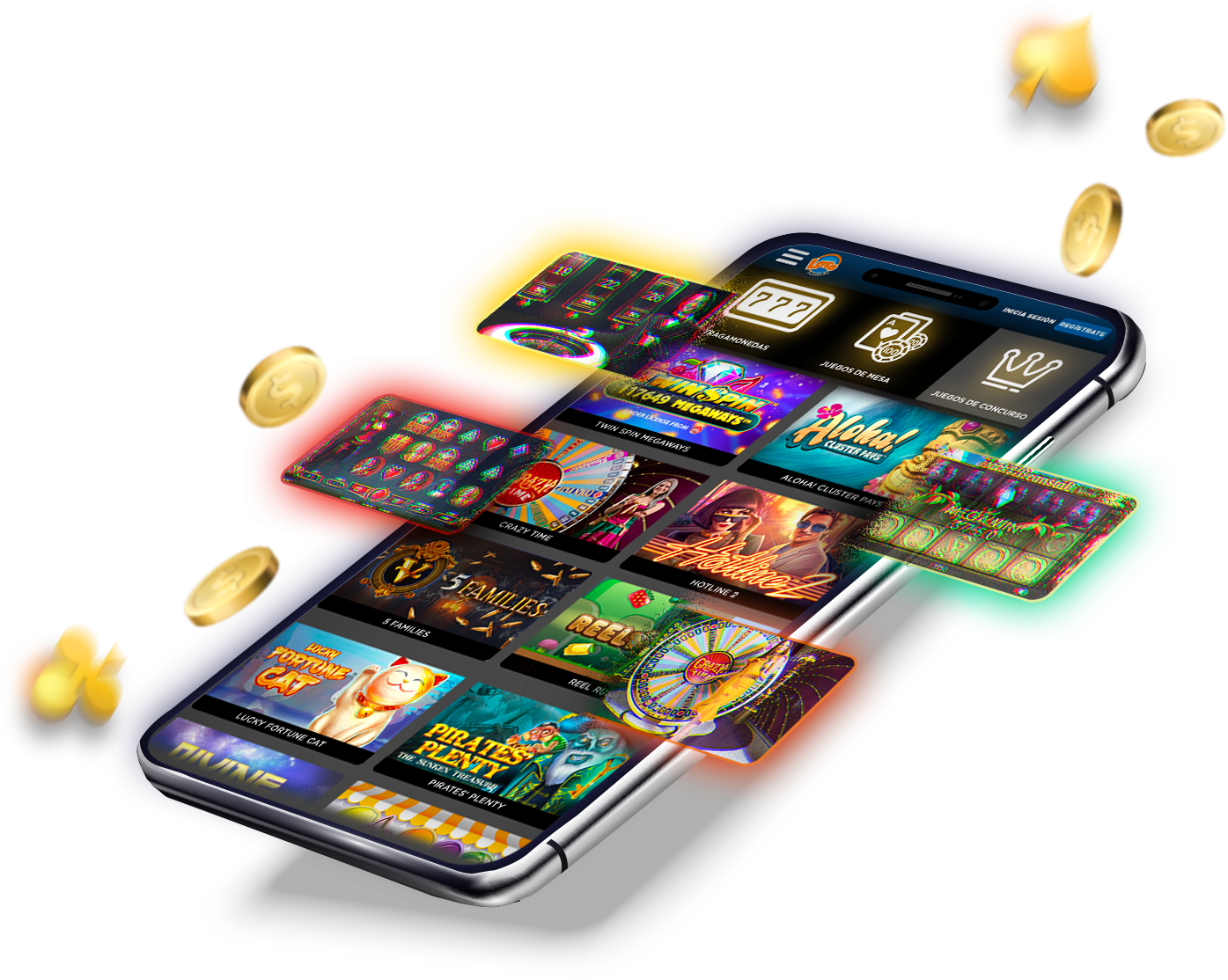 Jugá tus juegos favoritos de slots, juegos de mesa o concursos.
