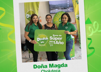 Por su parte, Magda Martínez ganadora del bono de Supermercado por un año en la ciudad de San Lorenzo, compartió su experiencia “Al llegar a mi casa revisé el boleto y en la parte de abajo vi que había ganado un bono supermercado por un año, no lo podía creer. Estoy muy contenta y agradecida con Diaria porque me entregaron mi premio y ahora con mi familia tendremos nuestra comidita todos los meses”.