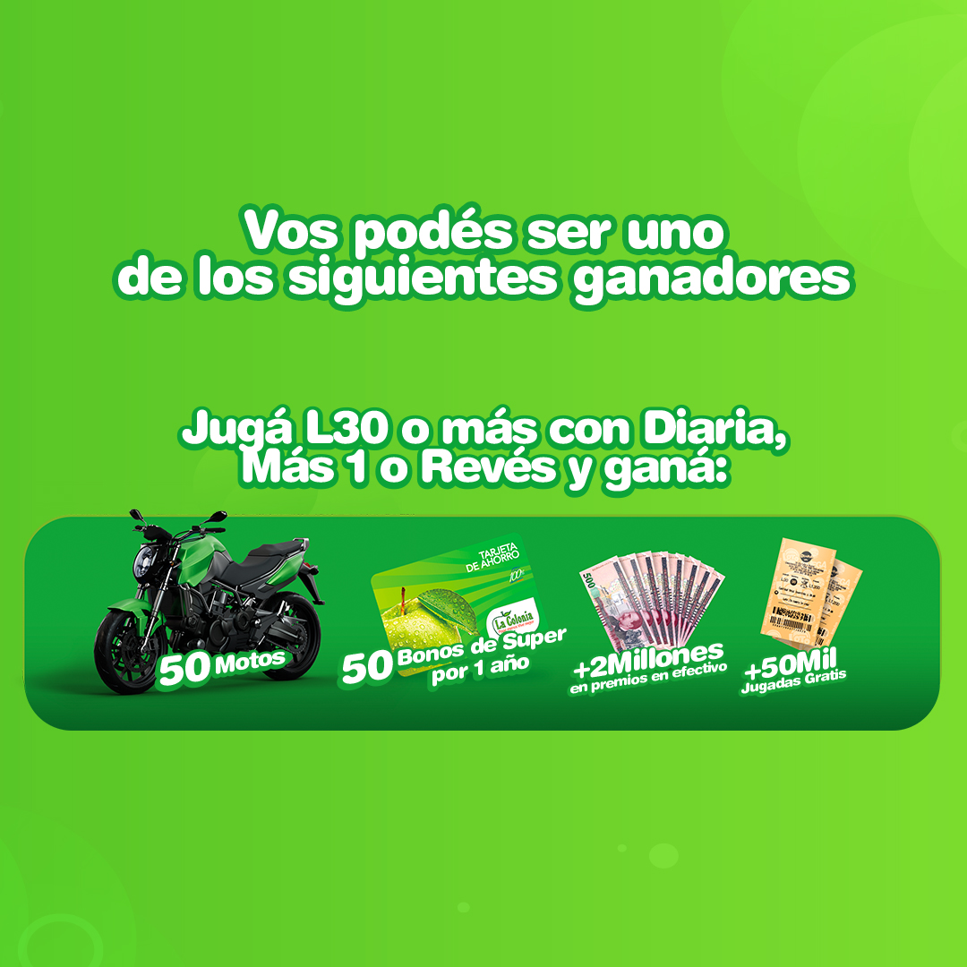 La promoción continúa vigente hasta el 15 junio, por lo que, los jugadores de Diaria, Más 1 y Revés aún pueden ganar al adquirir su boleto de L 30 o más, visitando uno de los más de 3000 puntos de venta a nivel nacional, Lotocentro más cercano o jugar en línea en loto.hn.