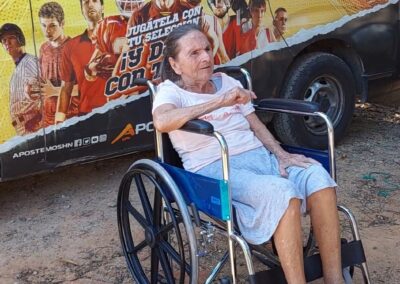 Aunque se encuentra en cama, doña Pascuala no se desvanece, es sobreviviente de cáncer de piel y tras haber pasado por varias cirugías su espíritu permanece fuerte. Su rostro se iluminó al ver a los voluntarios del programa Loto Cambiando Vidas con Alegría llegar hasta su casa para entregarle una silla de ruedas.