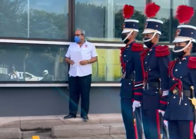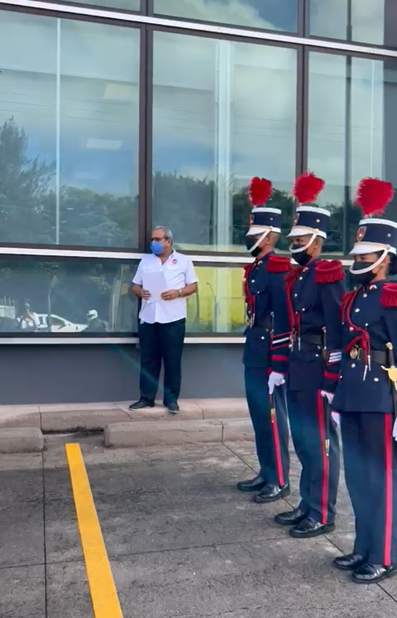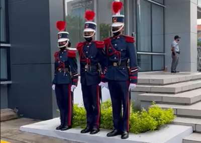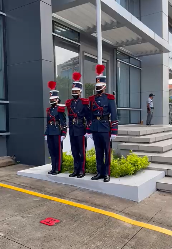 La directora de Asuntos Corporativos, Licenciada Ivette Zelaya, hizo entrega del Pabellón Nacional a los cadetes de la Academia Nacional de Policía General José Trinidad Cabañas, quienes procedieron a izarlo mientras todos los asistentes entonaban las notas del Himno Nacional de Honduras.