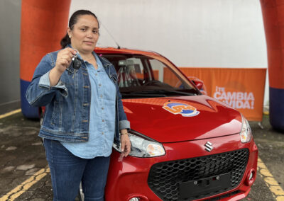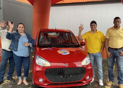 En San Pedro Sula, Doña Heidy Valeriano recibió con mucha alegría su carro nuevo, al resultar ganadora del sorteo realizado el 29 de noviembre, gracias a un boleto comprado en Pulpería Midence en Zambrano.