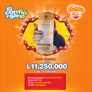 De los 18 departamentos, Francisco Morazán se lleva el primer lugar, con 10 ganadores en el 2021. Le sigue el departemento de Olancho, con dos ganadores en la ciudad de Juticalpa. Las ciudades de Choluteca y Tela se llevaron dos de los montos más altos alcanzados en el año, pero fue la capital del país que obtuvo el ganador con el monto más alto, 11.25 millones de lempiras. Este boleto millonario ganó con los números 10-11-04-14-30-21. ¿Te imaginás lo que este afortunado ganador sintió tras escuchar esos números en el sorteo? 11.25 millones que cambiaron su vida en un momento.